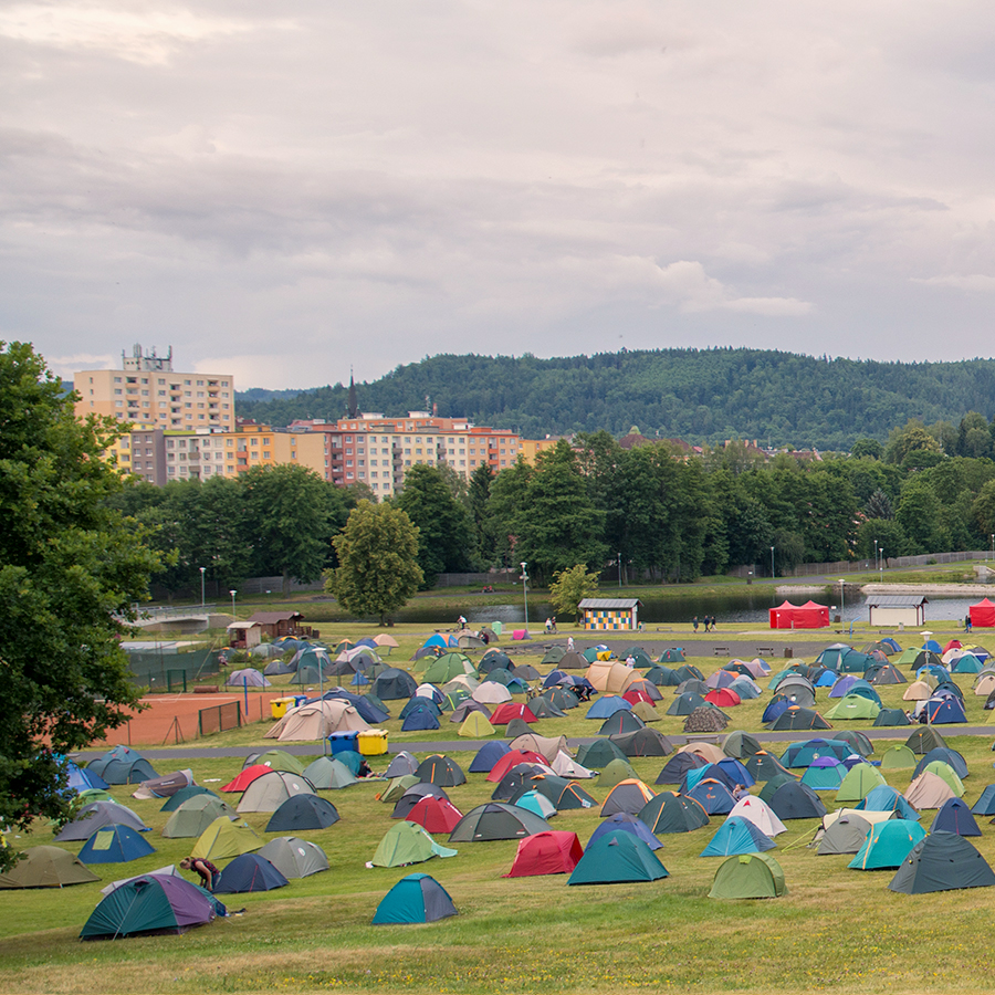 Stanové městečko v rámci MFF se nachází v areálu Rolava.